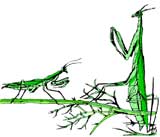 The 'praying mantis' forelimbs are folded and held up as if in prayer but there's nothing pious about the insect. Its praying posture is a hunting technique which allows it to catch and kill prey within a fraction of a second. Praying mantises are voracious eaters. They are cannibalistic too. The female will often bite off and eat the male's head while he's courting her. As insects can survive without their heads for some time, the headless male completes the mating process and then the female eats the rest of him.