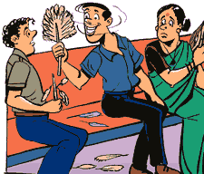 Once a moron was travelling by train on a hot summer day. As the train stopped at a station, a man selling hand-fans made of feathers entered the compartment. All the passengers bought hand-fans but in no time at all the feathers from everyone’s hand-fans fell off. The moron’s hand-fan, however, remained in tact. The passengers were astonished to see this and asked the moron how he managed to keep his hand-fan in such good condition. “Quite simple,” he replied. “I knew that the feathers would fall off so I kept my fan still and moved my face from side to side instead.”