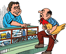 The owner of the new general store was a mean man who took delight in insulting people. One day, a man walked into his shop, holding a chicken under his arm.