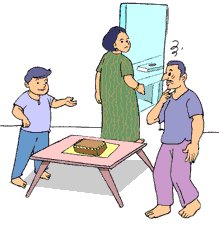 It was Little Johny's day to help his mother in the kitchen. As she took out the cake from the oven, he even helped her to put on the icing.