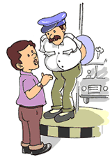 The policeman says, "Take the Bus No. 24 and get down at the last stop."
