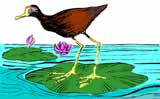 Jacanas or lily-trotters as they are sometimes called, have a long hind-claw and exceedingly long toes and this enables them to walk on floating vegetation in ponds and jheels without sinking. Jacanas’ nests are built on floating vegetation and sometimes both nest and eggs drift from one side of the lake to another! The eggs are wet most of the time and the chicks can swim as soon as they hatch. There are two species of jacanas in the Indian subcontinent.