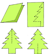 3.	Using a pen draw the zigzag shape of a pine or Christmas tree on the page opposite the fold.