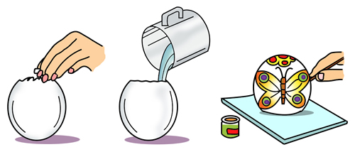 Clean out an empty eggshell. Make a paste of plaster of paris and fill the egg with it. Keep the egg upturned while the plaster of paris dries and hardens. Afterwards, paint the eggshell. Now your paper weight is ready for use!