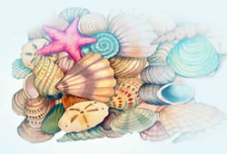 I found fantastic bivalve scallop shells, the shells joined by a hinge, nucleus, orange, grey, and white scallops. I was startled when one of shells in my collection began to move! It was difficult to choose from the delicate hues of the cockleshells- their ridges and furrows made each of them look unique.