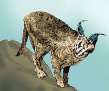 The caracal is a medium-sized wild cat with long pointed ears. The ears are tipped with tufts of black hair. The caracal is found in India,West Asia and Africa.This most handsome of cats has reddish-brown fur and an elegant gait. The female caracal gives birth to 2-4 cubs in a den made in the hollow of a tree or a rock crevice.