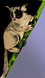 The galago has thin, large, hairless bat-like ears, that it folds while leaping through trees and while resting. It is sometimes called a 'bush baby' as it sleeps all through the day. It is a nocturnal animal with enormous eyes that provide excellent vision at night, when it jumps from tree to tree in search of food.
