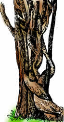 Once the seedlings of a strangler fig tree take root in the debris or leafy mould found in the crevices of a tree, they send out roots that entwine the tree. The roots get their nourishment from the trunk and branches of the tree.