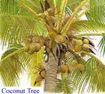 A coconut tree is useful in many ways. The fronds are woven together and used for thatching huts, and mid rib used to make broomsticks. The soft fibers of the nodes are used in packing and lining. The fruit has many uses. The outer husk is used as fuel, or made into coir from which mats and ropes are made. The kernel is edible and used in cooking. The dried kernels are called copra and are pressed for oil. Coconut oil is one of the best lubricants and used as a bio-diesel in Thailand. Oil is a popular ingredient in cosmetics, hair oil and shampoo. Coconut water is highly nutritious and curative. It is also used in tissue culture media. Coconut sap is fermented to yield toddy.