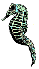 Sea horses range from 6 to 12 inches long, and are found in many colors. They live in shallow waters of reefs (0.5 M to 30 M) and anchor themselves to the seaweeds using their tail. One of their fins help them move forward and another controls the direction of movement. Unlike other fishes, sea horses glide slowly through water by regulating the volume of gas in their bodies.