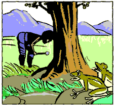 "But they did!" insisted the frogs. "There's one of them sheltering under that tree right now."