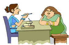 After two weeks, Mona comes back, having lost 15 kilos. The surprised dietician asks her how she did that.