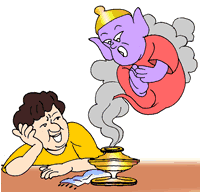 The freed genie is happy and says, "I will gift you a machine which, if you push its button, will do anything for you."