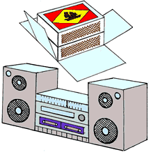 3. With the black sketchpen make the markings of a radio and two cassette players on the main 'deck' using the illustration as a guide.