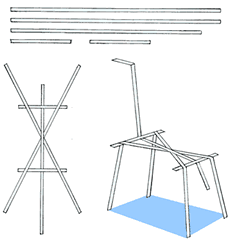 Five lengths of thin broomstick (‘narial jhadoo’) of the sizes shown in the picture and strong glue.